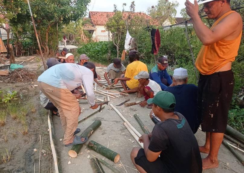 Jembatan bambu di Dusun Dondomaman, Desa Bojoasri, Kecamatan Kalitengah, Lamongan kini hampir rampung. Berdirinya jembatan ini bukan sebagai proyek megah, melainkan sebagai bukti bahwa di tengah pengabaian sistemik dan kepungan bencana, ikatan sosial masyarakat Lamongan justru semakin solid.